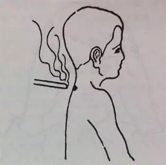 方法:患儿俯卧或端坐低头,医者在其大椎穴用艾条温和灸,每次20分钟,或用隔姜灸,每次3~5壮。每日2~3次。