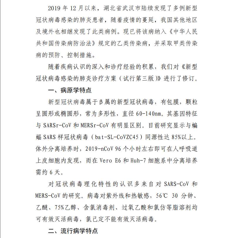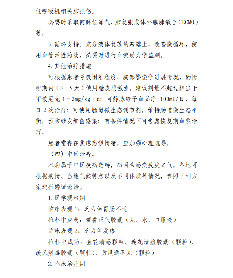 新型冠状病毒感染的肺炎诊疗方案 (试行第四版)
