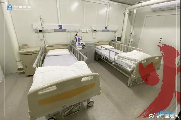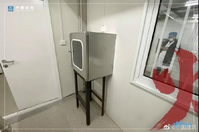2月2日,火神山医院完成军地交接,央视记者探访医院内部发现:每个病房布置两张专用病床,房间中有一个单独的小窗口,还有一个玻璃窗,方便医护人员拿取物品。