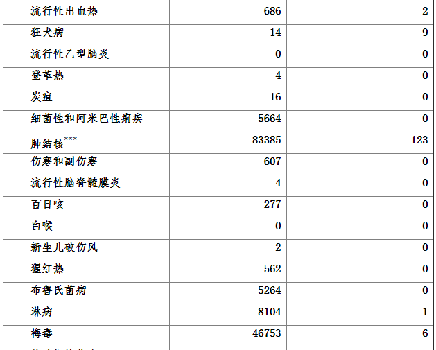 其中,甲类传染病中霍乱报告1例病例, 无死亡报告。乙类传染病中传染性非典型肺炎、脊髓灰质炎、人感染高致病性禽流感、流行性乙型脑炎、白喉和人感染H7N9禽流感无发病、死亡报告,其余21种乙类传染病共报告发病278014例,报告死亡1781人。报告发病数居前5位的病种依次为病毒性肝炎、肺结核、梅毒、淋病以及细菌性和阿米巴性痢疾,占乙类传染病报告病例总数的95%。5月1日0时至5月31日24时,全国31个省(自治区、直辖市)和新疆生产建设兵团报告新型冠状病毒肺炎确诊病例 143例,死亡1人。
