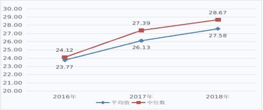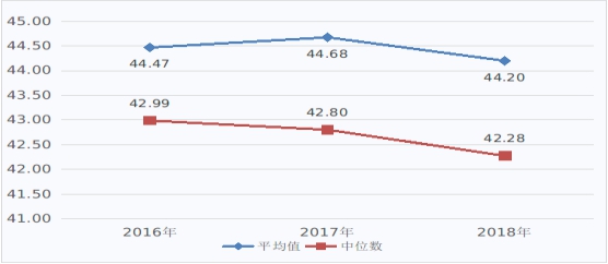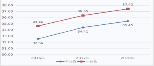 图1 2016-2018年医疗服务收入(不含药品、耗材、检查检验收入)占医疗收入比例(%)